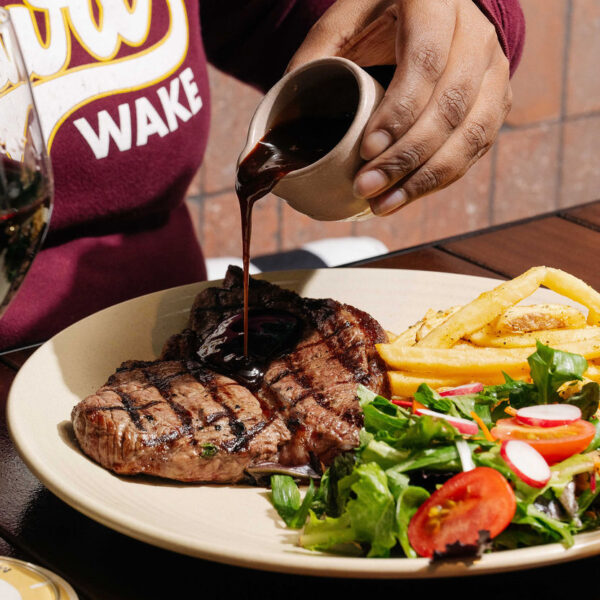 Hearty, smoky, and full of country soul! Our menu brings classic pub fare to life with a cowboy twist. Think Aussie flame-grilled steaks, stacked burgers, perfect parmys, and all your comfort-food favourites, served up with ice-cold beers and big country energy. Whether you’re here for a feed, a froth, or the full shebang – we’ve got your cravings covered.
